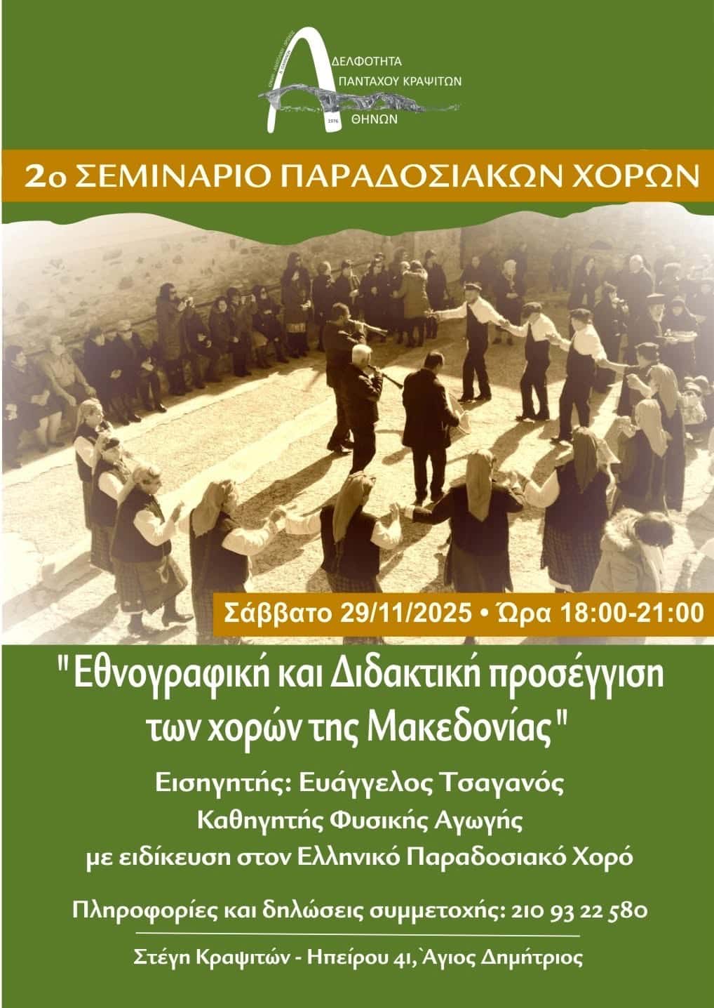 Σάββατο 29 Νοεμβρίου 2025 το 2ο Σεμινάριο Παραδοσιακών Χορών, με επίκεντρο